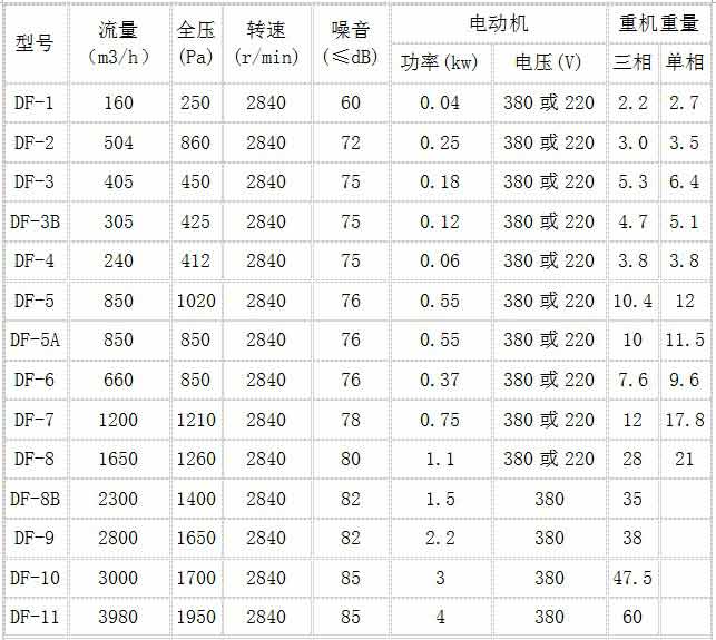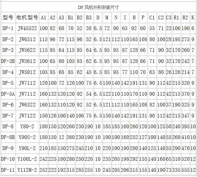 DF風機外形安裝尺寸圖和性能表