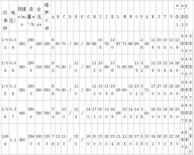 L-03~L-064型還配有鋁合金整體鑄機殼。(可根據(jù)客戶需要提供進風口無紡布空氣過濾器。)